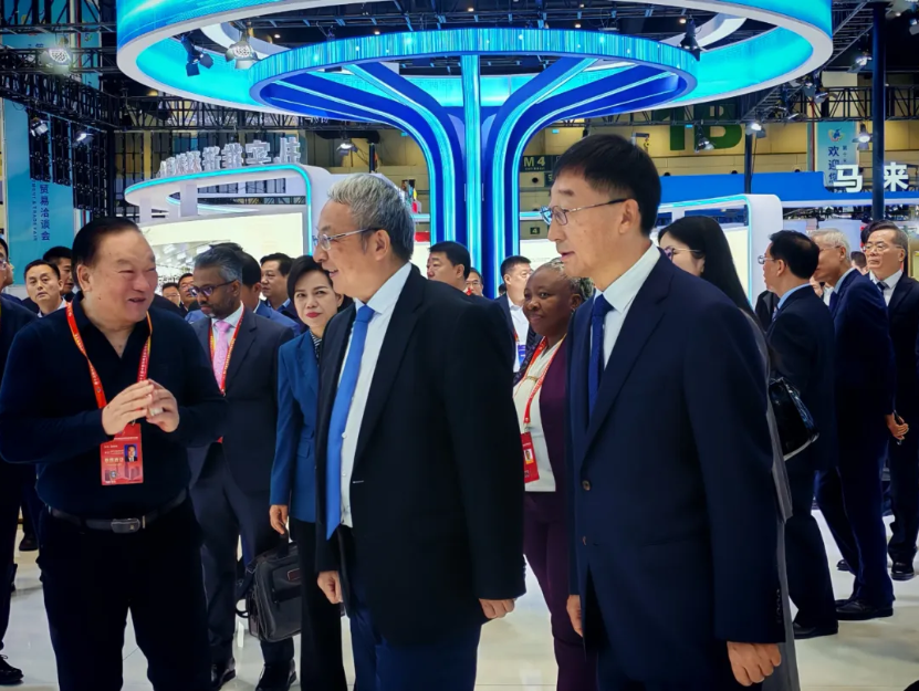 ▲相关领导莅临云飞科技所在展区参观